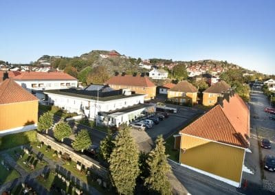 2 bygninger oppført i 1978, inneholder 12 leiligheter. Det er 8 leiligheter i det ene bygget og 4 i den andre. Leilighetenes størrelse er alle 50 kvm. I underetasjen er det “aula”, garderober, toaletter, lager og hobbyrom.
